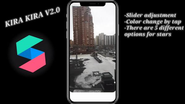 The effect Kira Kira -Change colors by tapping the screen -5 different star options -Slider